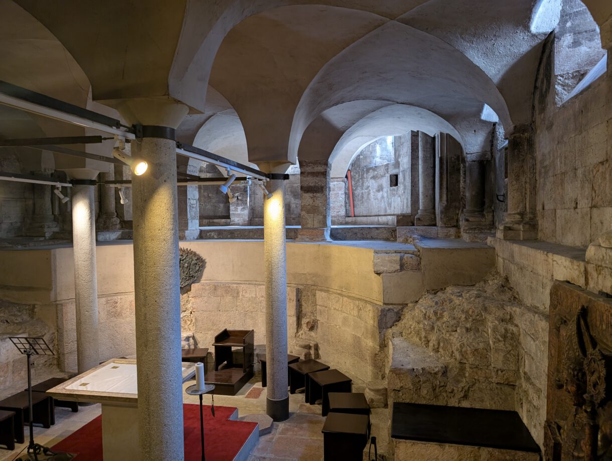 Und von der Krypta kommt man in den „Underground“ mit der Vorgängerkirche. Dort gibt es Virtual-Reality-Stationen, die die ungewöhnliche Geschichte der Kirche sehr plastisch erlebbar machen. Dieser Dom ist echt speziell! (Eine gute Stunde haben wir dort verbracht.)