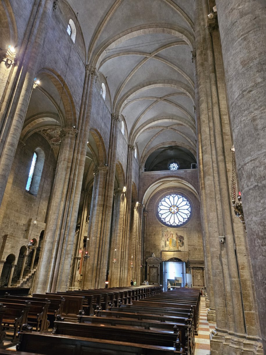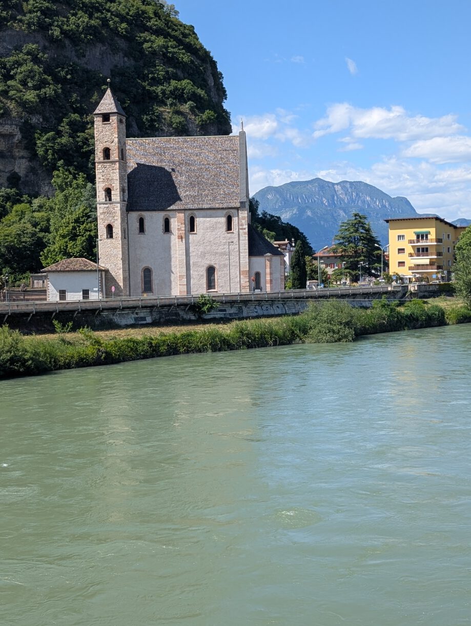 Das Trienter Konzil fand in der „Basilica di Santa Maria Maggiore“ statt, eine der ersten Renaissance-Kirche. Ab da wollte ganz Europa auch so eine Kirche. Lohnt also anzuschauen. Aber es gibt noch mehr: Die ungewöhnlich hohe Kirche „St. Apollinaris“ jenseite der Etsch. Die hat Charakter.