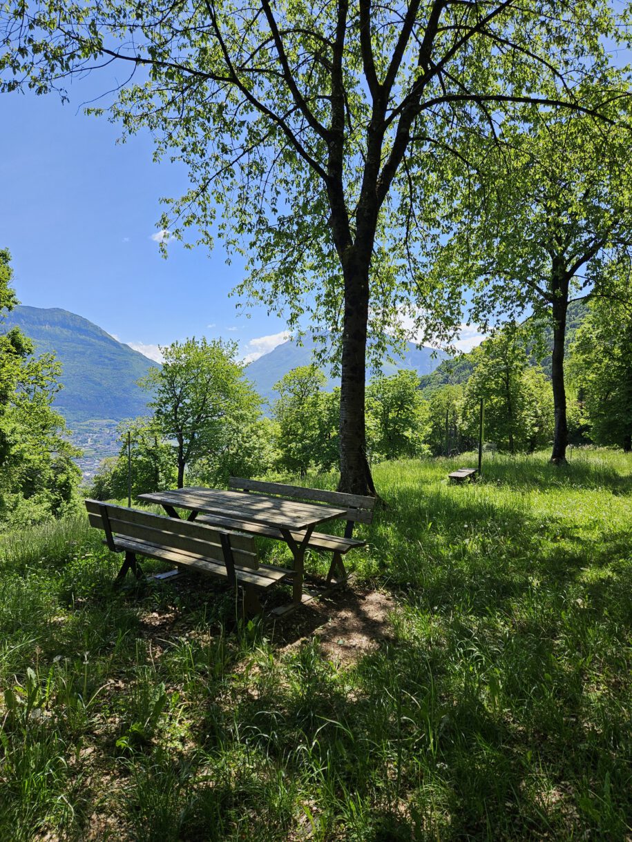 Zumindest im Mai ist es oben wunderschön bis lieblich. Wir haben sehr gut im einfachen „Ristorante Osteria San Rocco“ gegessen. (Insgesamt waren wir 6 Stunden unterwegs, incl. Seilbahnfahrt.)